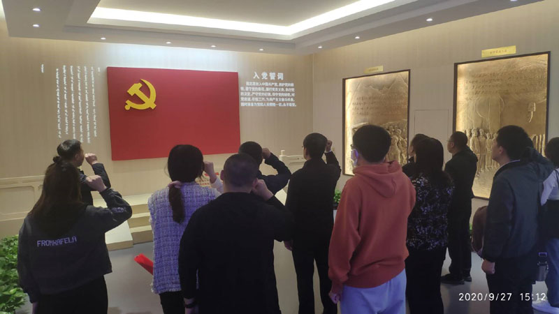 9月27日,集團公司黨委辦公室組織機關(guān)及樓內(nèi)企業(yè)黨支部黨員參觀“黨員政治生活館”,并通過“燭見初心”、重溫入黨誓詞、觀看《建黨大業(yè)》影片等形式,過了一次生動的主題黨日活動。通過活動,使每名黨員在思想上得到了洗禮,精神上得到了鼓舞。大家紛紛表示,一定要以革命先輩為榜樣,更好地繼承和發(fā)揚共產(chǎn)黨人精神,不忘初心、牢記使命,在全面建成小康社會的征程上貢獻(xiàn)自己的力量。該展館位于康巴什新區(qū),總面積1300平米,共有初心永承、激濁揚清、牢記使命、淬煉本色、砥礪前行等5個功能板塊。展館采用數(shù)字多媒體技術(shù),給廣大黨員帶來了耳目一新的體驗。